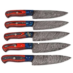 Set di coltelli da cucina forgiato in acciaio damasco forgiato a mano 5 pezzi all'ingrosso tagliente per affettare i coltelli da cucina accenti di legno